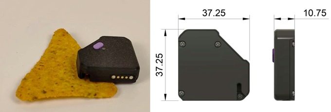 Pesando 85 gramas, os rastreadores também são impressionantemente compactos: um Dorito para balança.