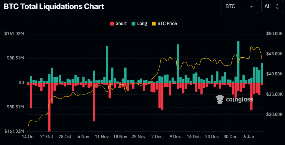 O preço do Bitcoin (BTC) caiu mais de 6%, de meados de US$ 46.000 para meados de US$ 43.000, à medida que surge a reação pós-spot de “venda do fato” do ETF Bitcoin.