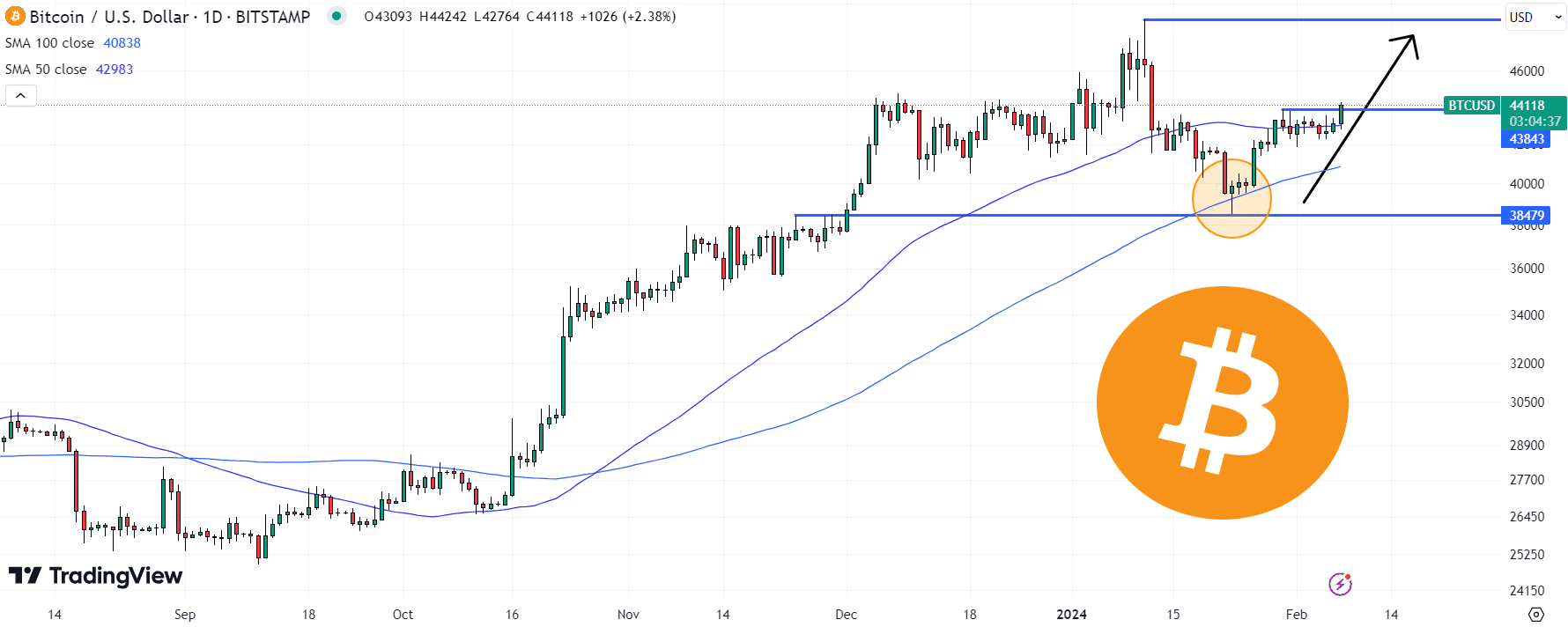 As probabilidades parecem fortemente inclinadas para que o preço do Bitcoin volte em breve para seus máximos de 2024, de US$ 49.000.