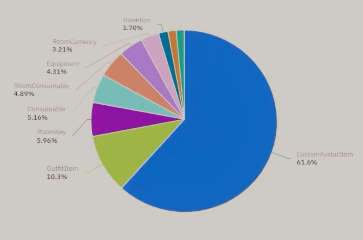 Blueasis diz que o impulso da plataforma para cosméticos de avatar gerados por usuários foi “seu maior sucesso”, que eles revelam ser responsável por 60% dos gastos dos jogadores, “vendendo itens originais da Rec Room em 10x”.