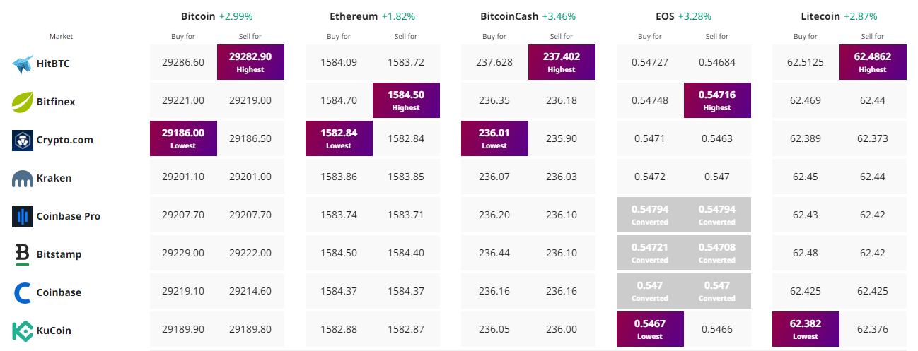 Encontre o melhor preço para comprar/vender criptomoeda