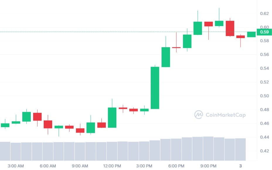A oferta circulante da Toshi é de aproximadamente 5,63 bilhões de moedas. A moeda registrou aumento de quase 24% no último dia, sinalizando forte interesse dos investidores.