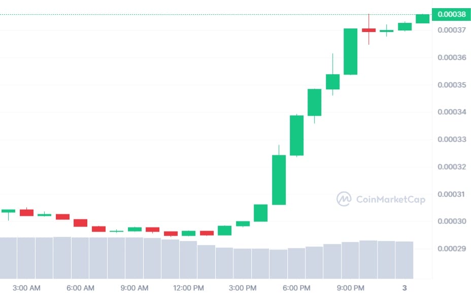 Toshi experimentou um aumento notável, atualmente cotado em US$ 0,00038. Possui uma capitalização de mercado de cerca de US$ 153 milhões e registrou um volume de negócios de aproximadamente US$ 2,11 milhões nas últimas 24 horas.